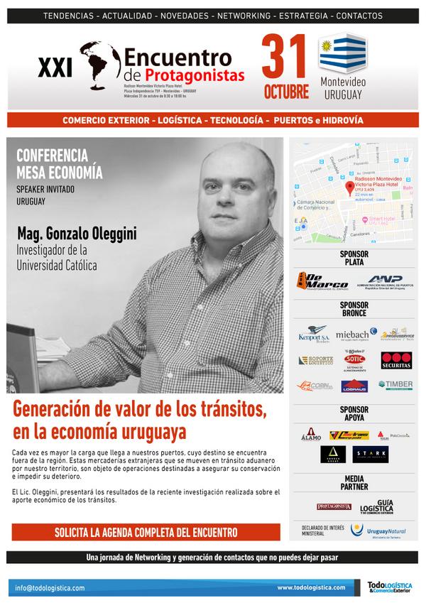 El sector logístico y de comercio exterior se reúne el próximo 31 de octubre en Uruguay, ya que Todologistica realizará el Encuentro de Protagonistas número veintiuno, con muchísimas novedades, sin duda estimulantes. Una jornada de networking y generación de contactos que no debes dejar pasar. |